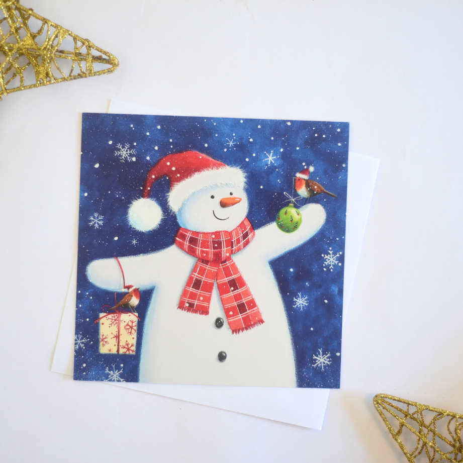 Celebrate the festive season with the Winter Friends Christmas card, featuring a charming snowman on the cover. Designed to spread warmth and joy, this card captures the magic of winter with its delightful illustration. Perfect for sharing heartfelt holiday wishes with friends and loved ones, it combines a classic seasonal image with expert craftsmanship to make your greetings memorable.